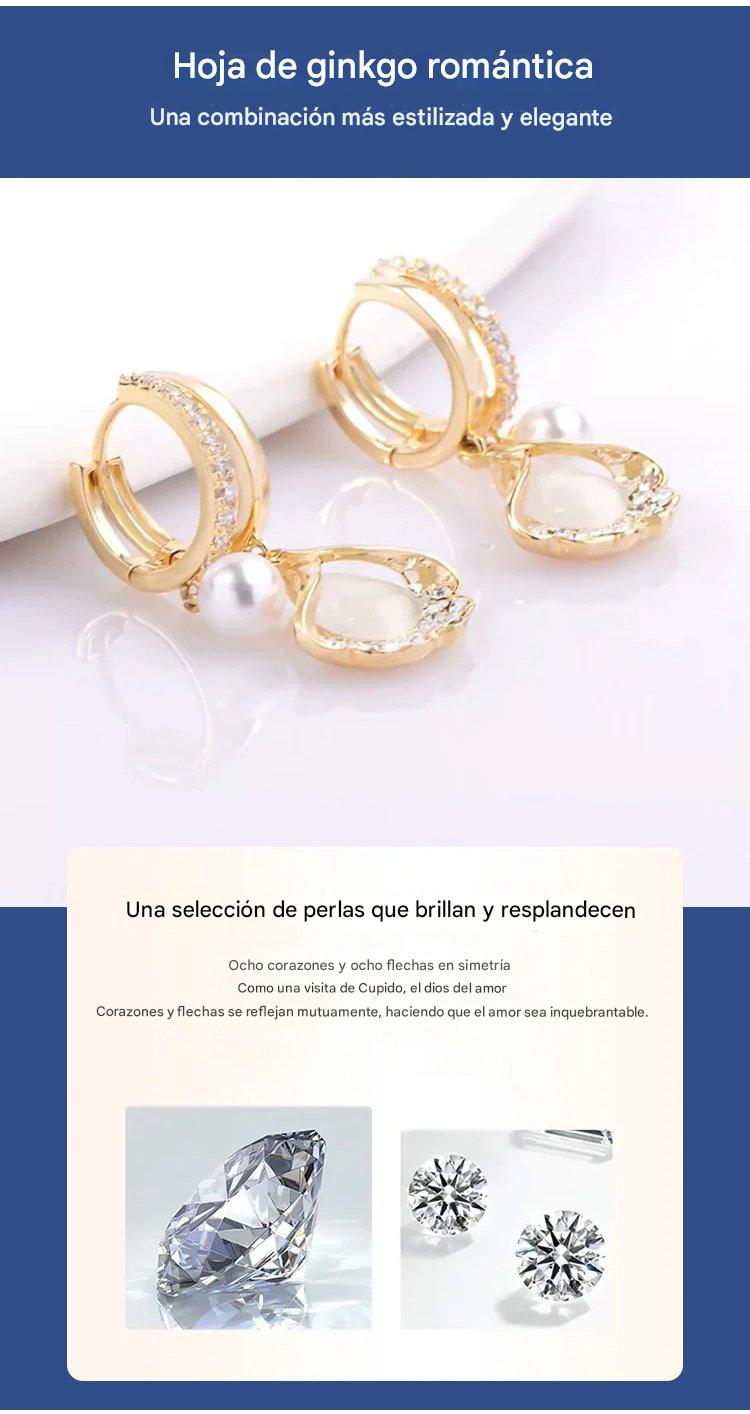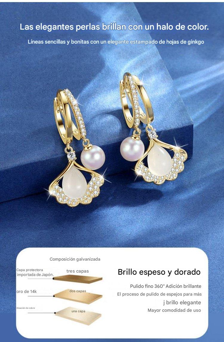 Pendientes elegantes con piedras preciosas de ojo de gato y diseño de hoja de ginkgo